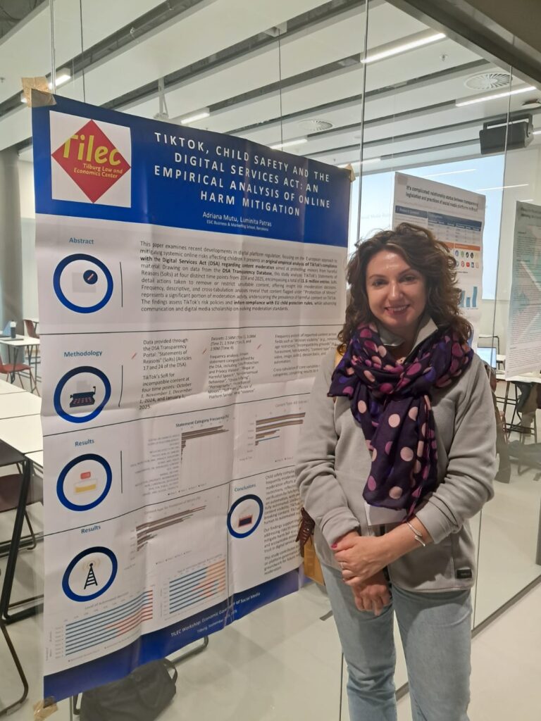 MEDEA is pleased to highlight the participation of Adriana Mutu at the Tilburg Law and Economics Center (TILEC) Workshop on “Economic Governance of Social Media”, held at Tilburg University, the Netherlands, on September 25–26, 2025.